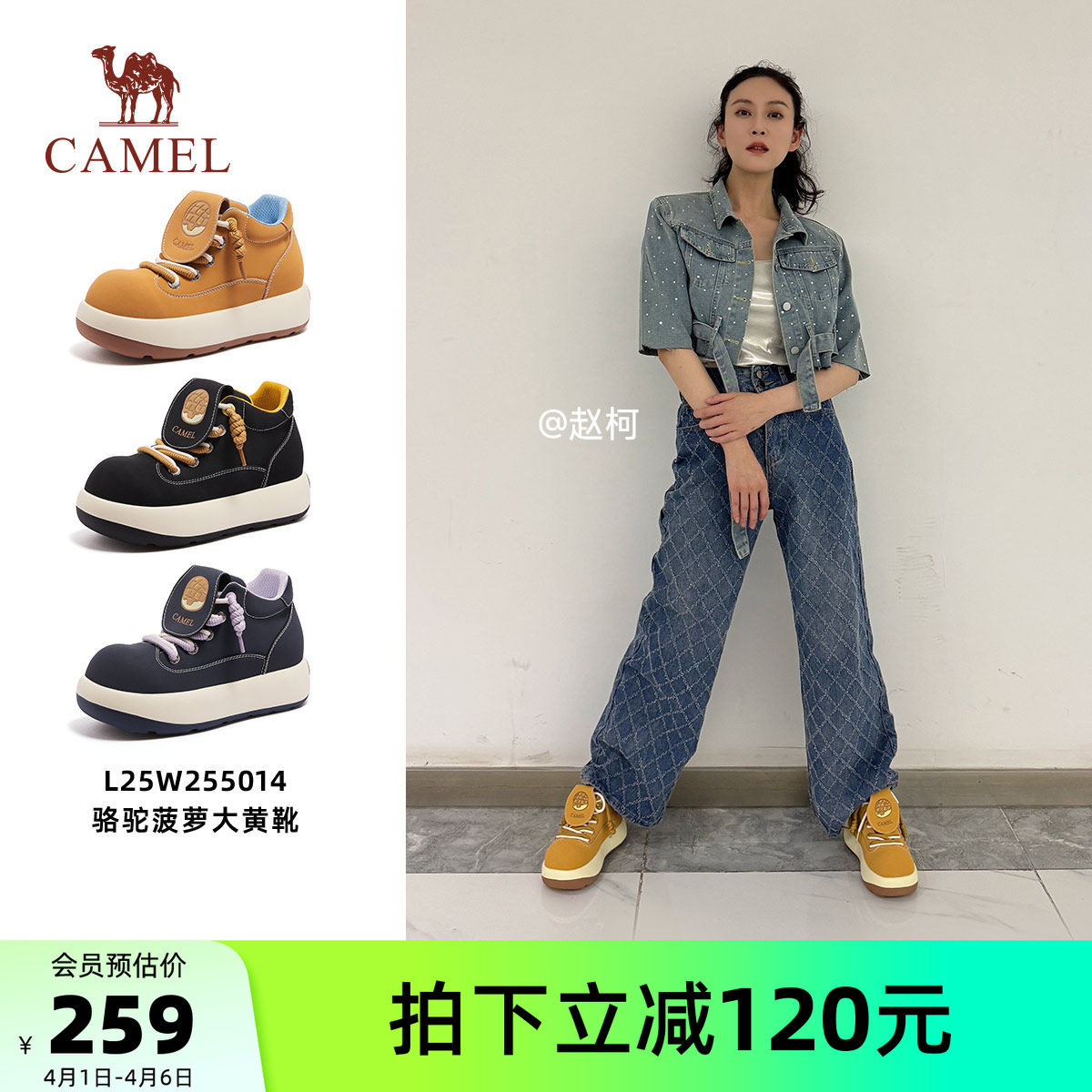 骆驼菠萝大黄靴女鞋2026春季新款复古松糕厚底马丁靴女大头短靴子
