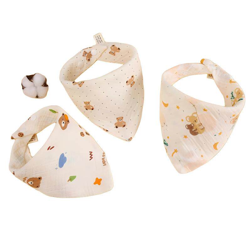【3件装】A类春夏纯棉纱布围嘴新生儿围兜卡通柔软婴儿全棉口水巾