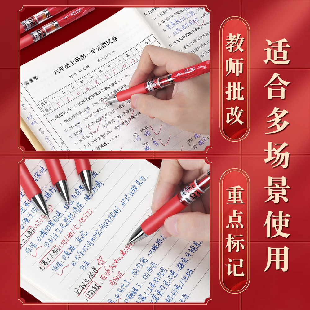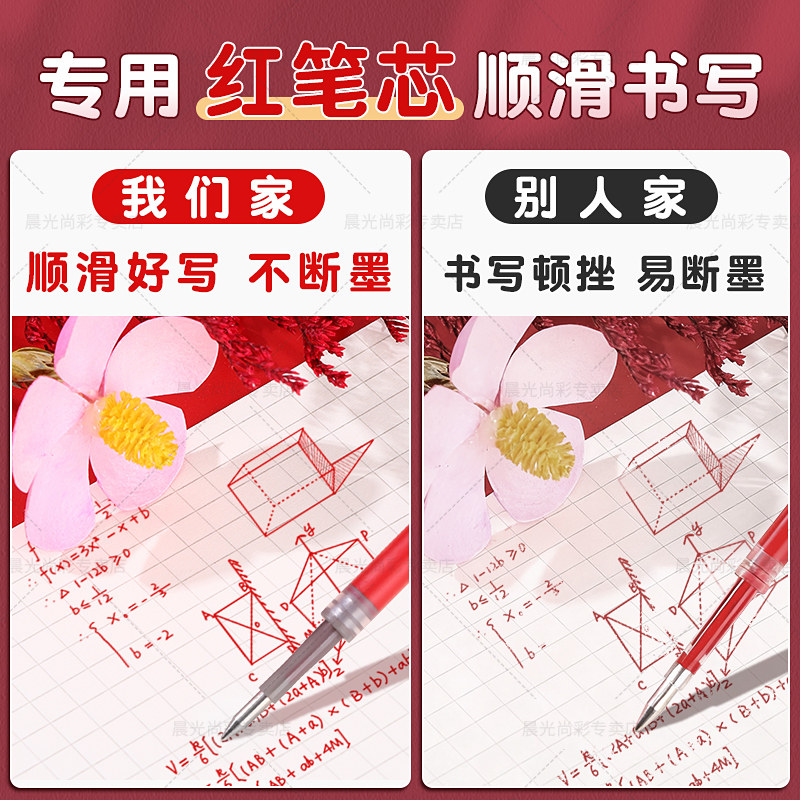 晨光按动笔芯红色G-5子弹头学生专用红色做笔记老师专用批改作业中性笔替换芯按动式0.5签字笔K35原装大容量