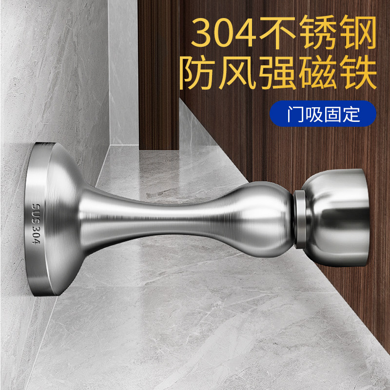 门吸免打孔新款304不锈钢强磁吸门阻器卫生间防撞门碰门挡器地吸