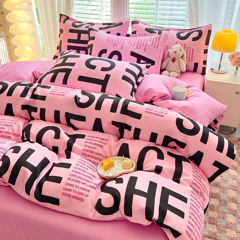 床上四件套纯水洗棉全被套罩宿舍单人学生床品床单女士三件套夏季