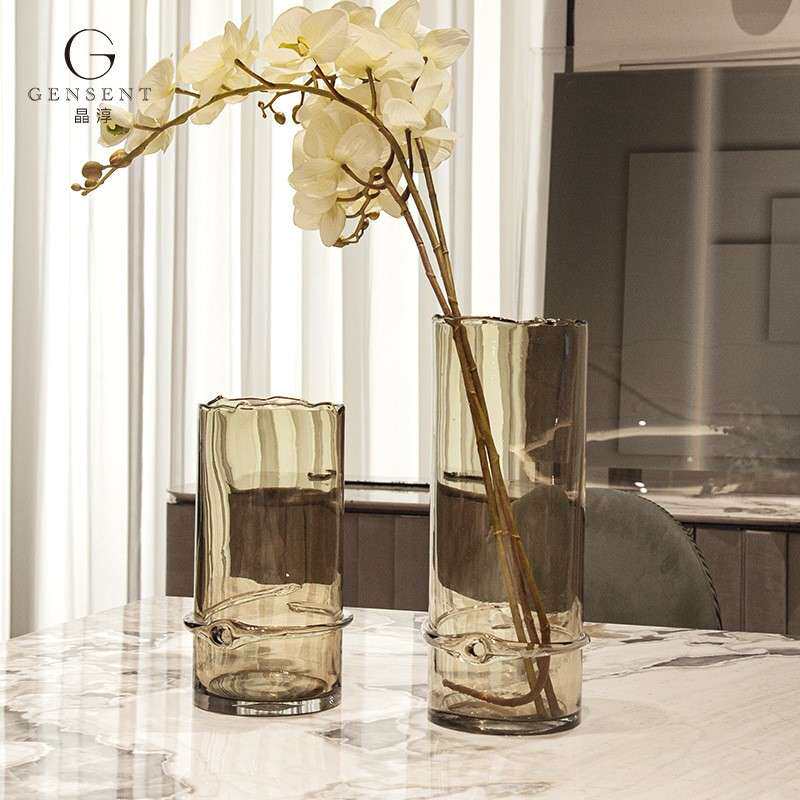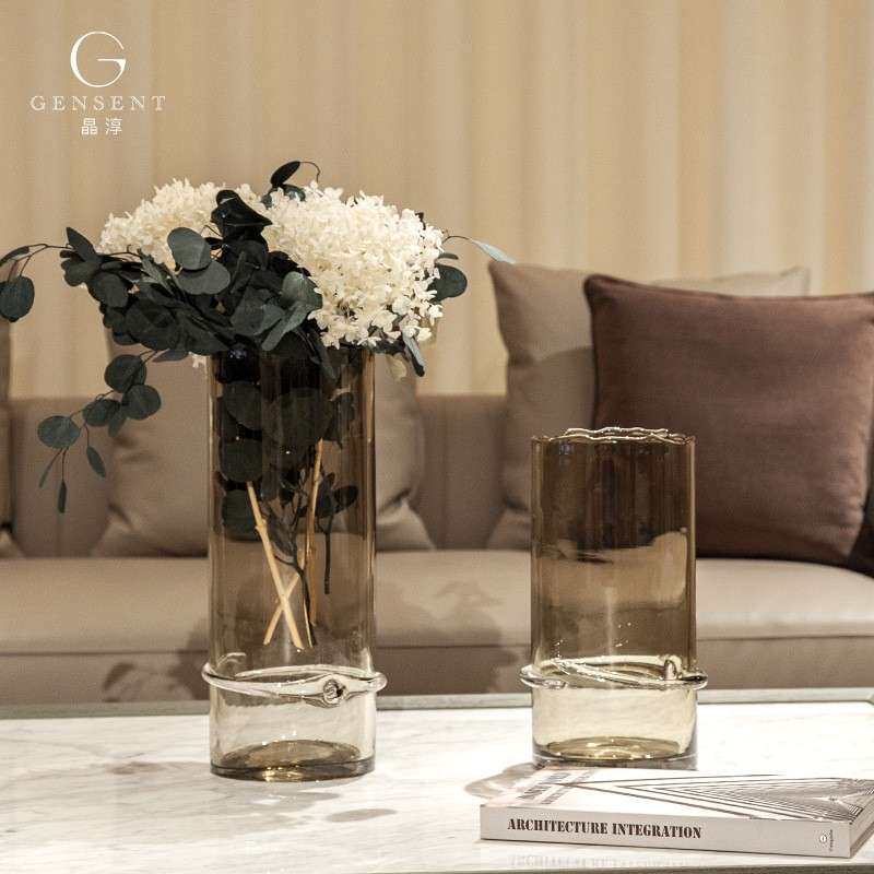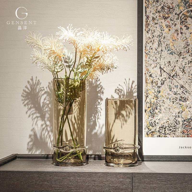 晶淳客厅落地大花瓶高人工吹制玻璃摆件软装饰品手工吹制