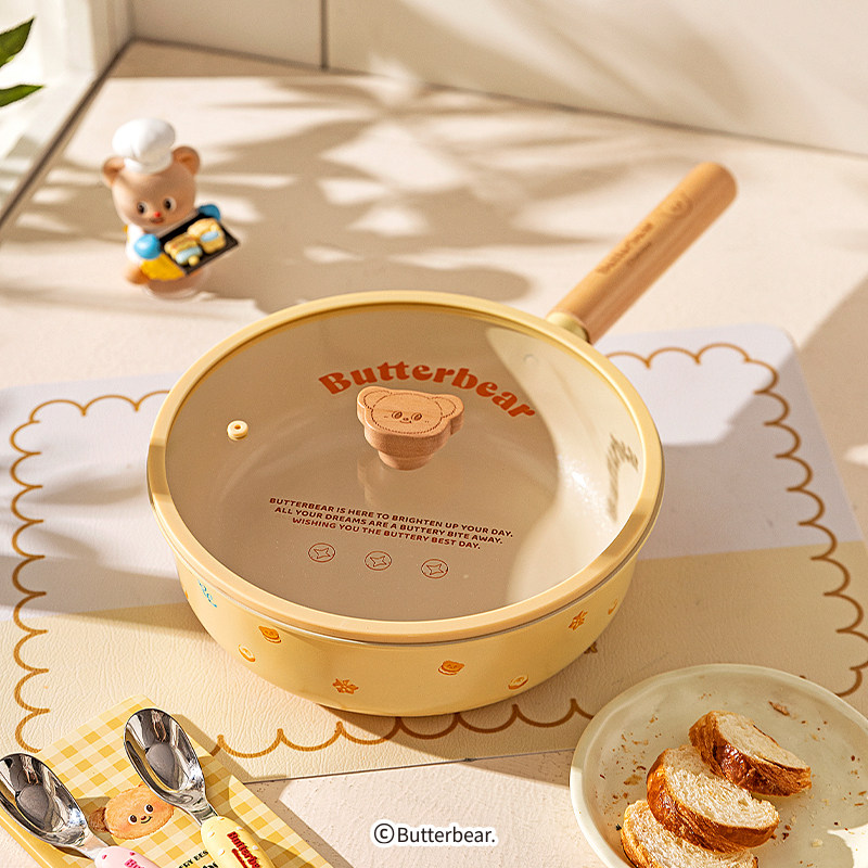 【摩登主妇&黄油小熊】钛陶瓷不粘锅平底煎锅家用炒菜辅食小炒锅