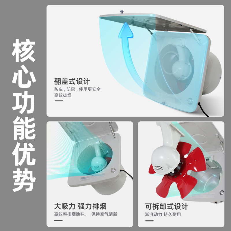 厨房翻盖家用排风扇排气扇换气扇抽油烟机静音强力排油烟扇大吸力