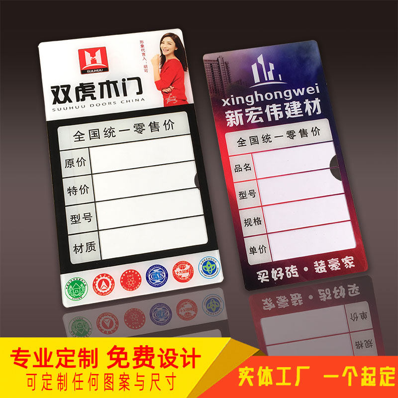 亚克力定制高档价格牌木门业瓷砖卫浴地板建材整装商品标价签挂牌