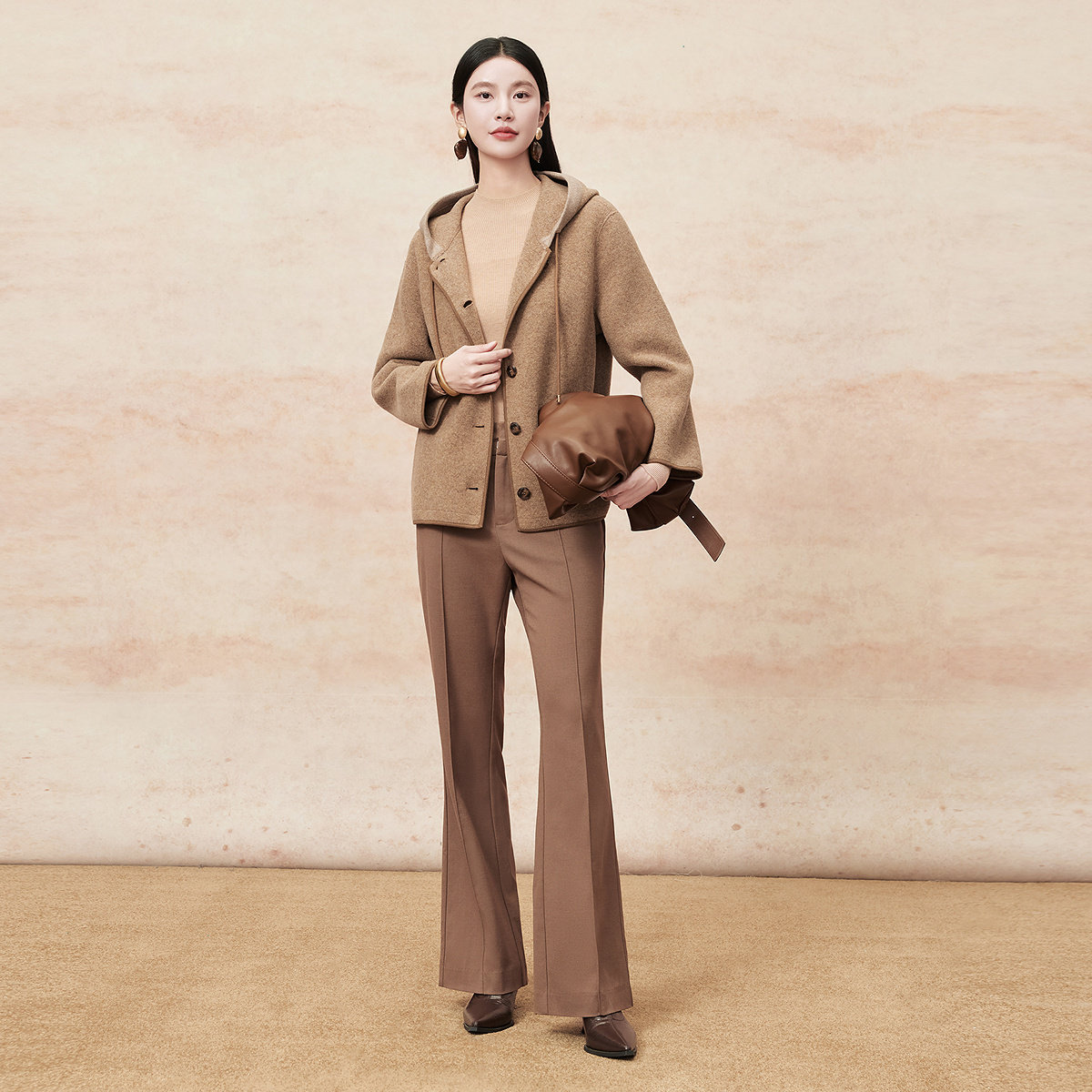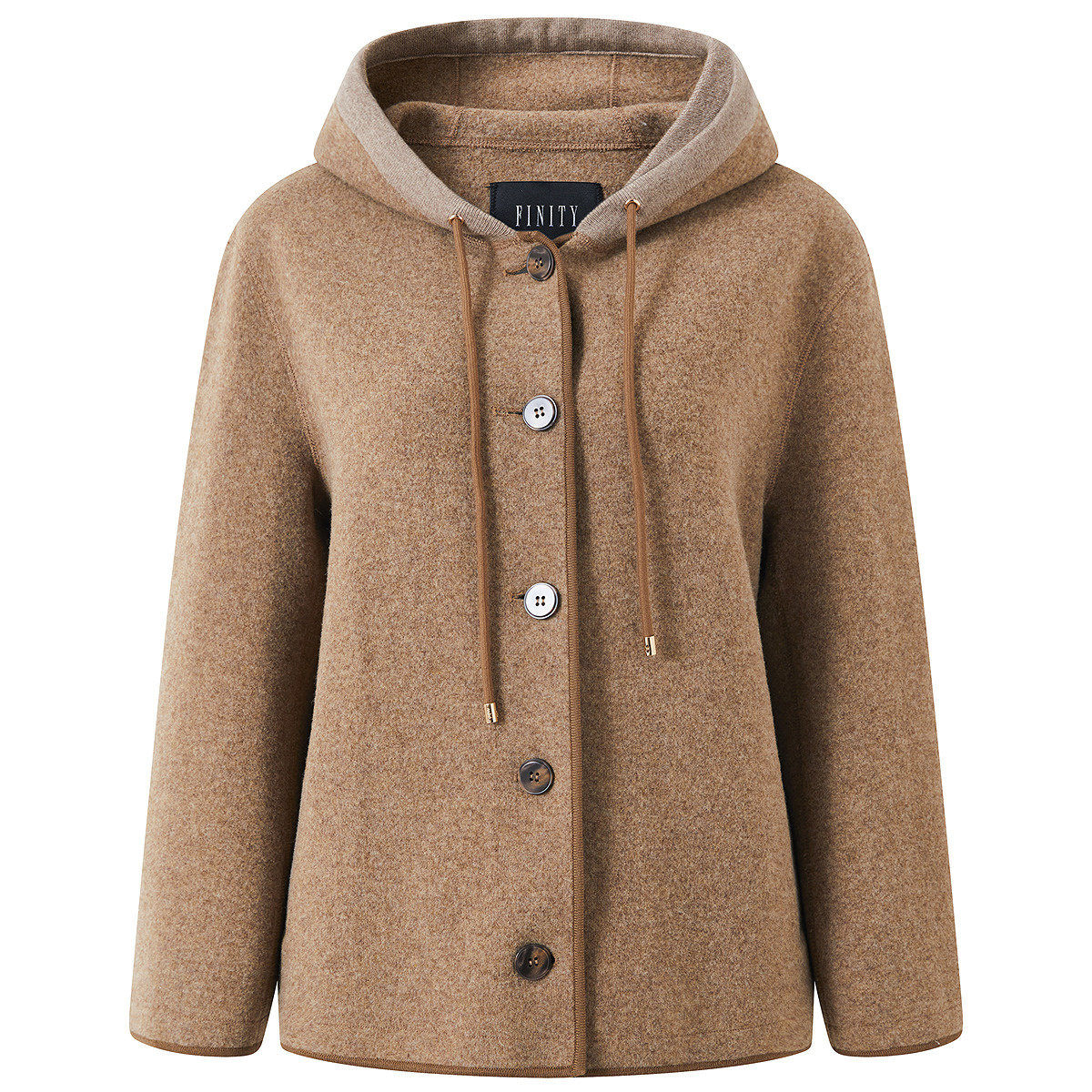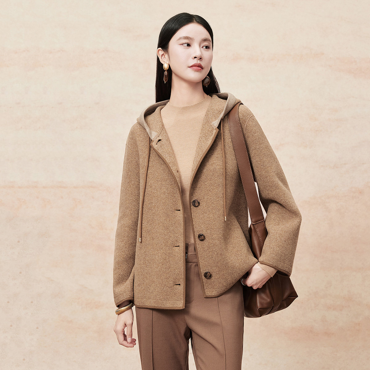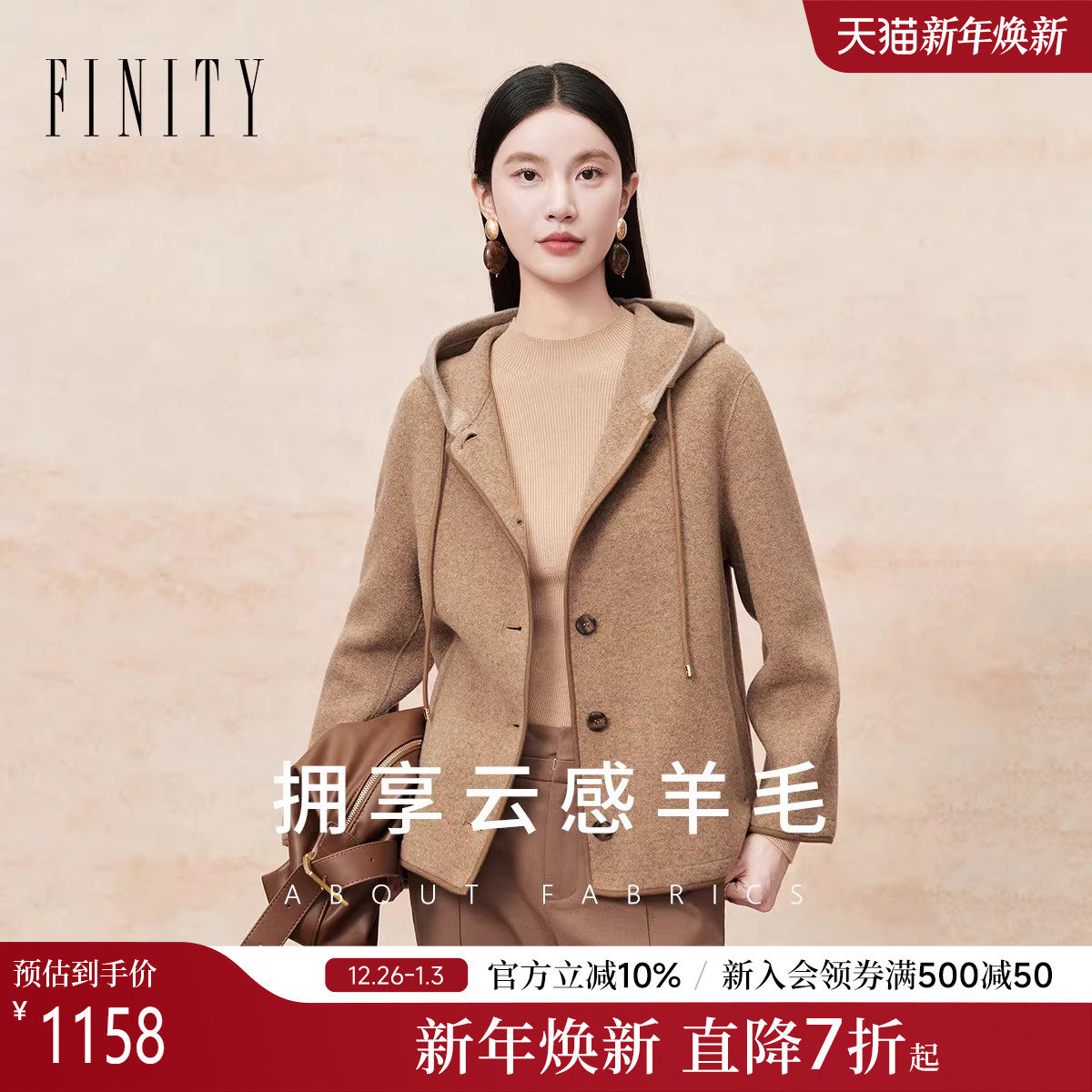 FINITY菲妮迪毛呢大衣2025年冬季新款简约双面呢连帽短款外套女士