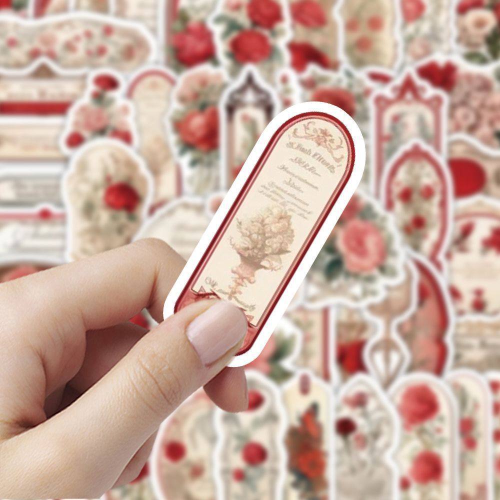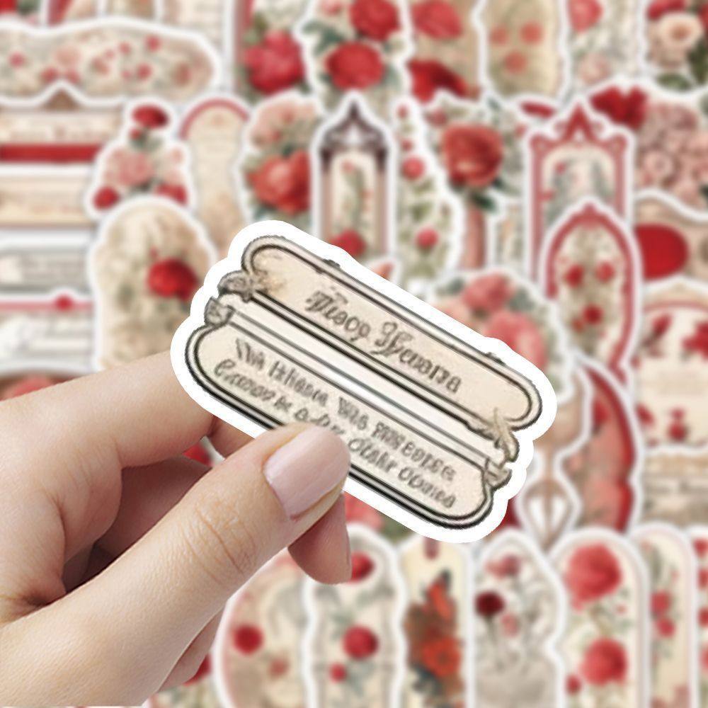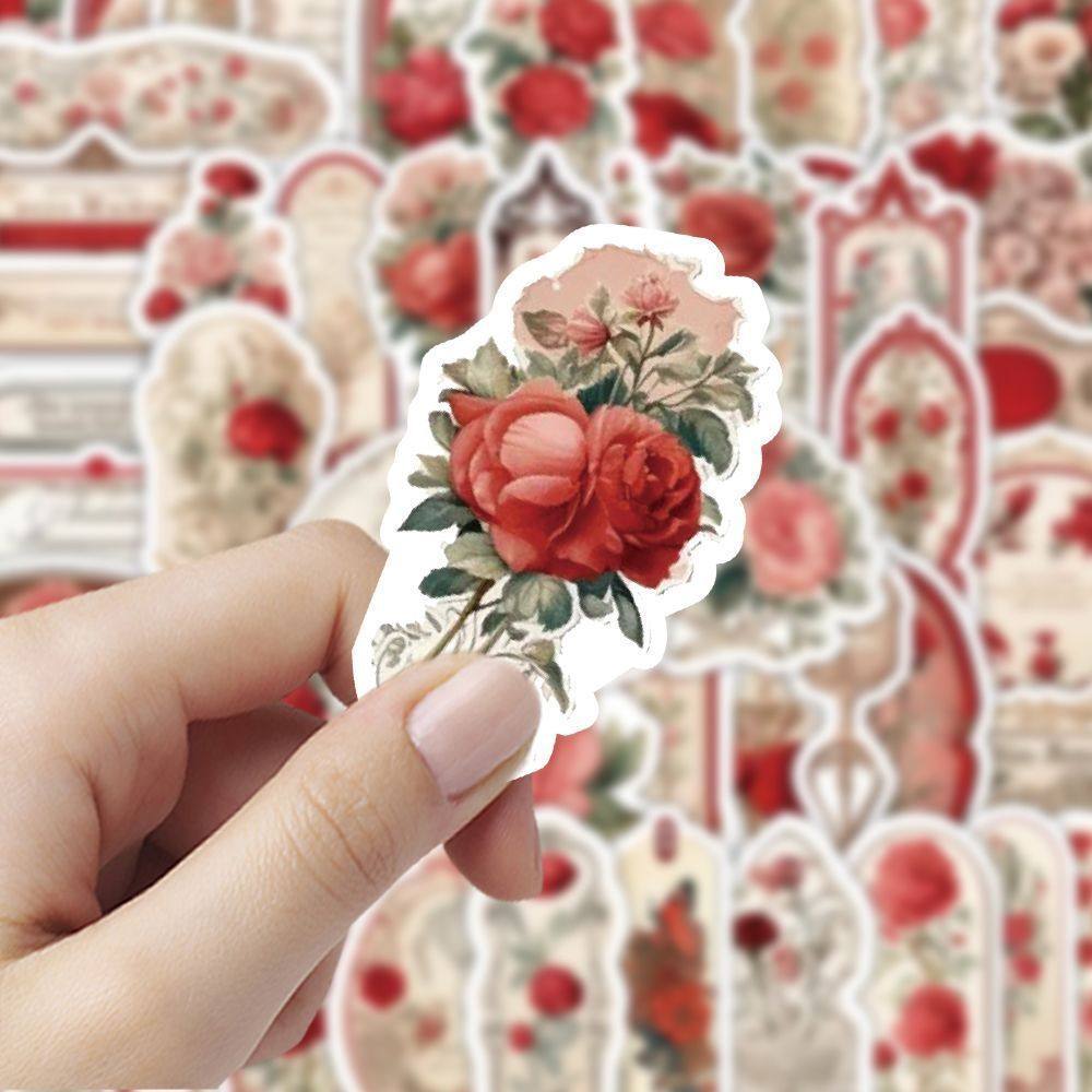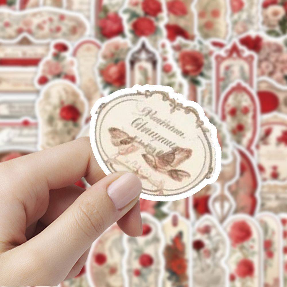 118张宫廷复古红蔷薇手账素材文艺贴纸手机手账笔记本装饰小贴画