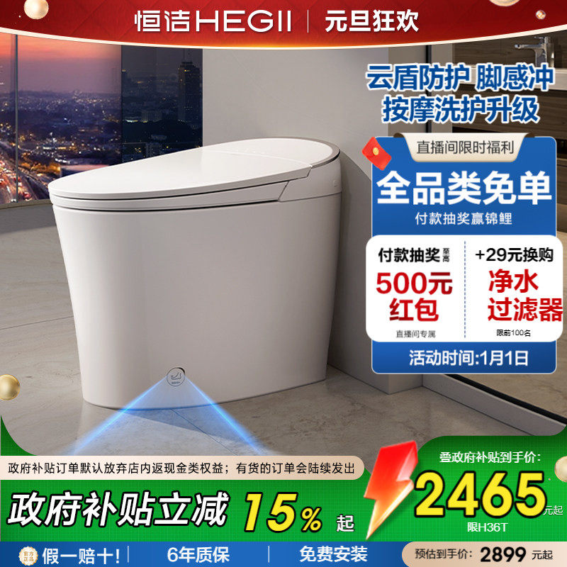 【新品】恒洁智能马桶全自动一体感应按摩洗泡沫盾家用H36T