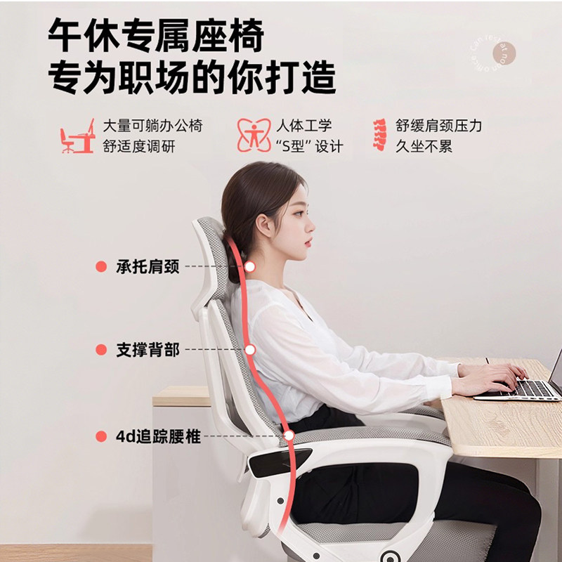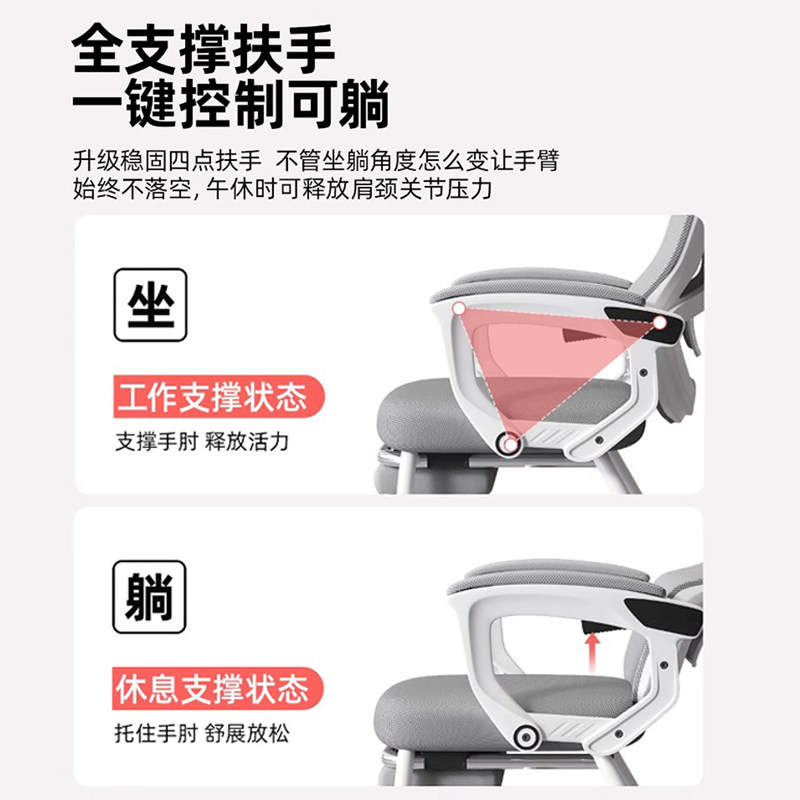 电脑椅午睡办公椅两用人体工学椅子可躺平座椅家用舒适久坐弓形椅