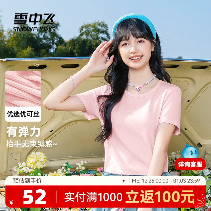 雪中飞正肩短袖女2026新款夏日穿搭女生甜美少女粉独特漂亮t恤PC