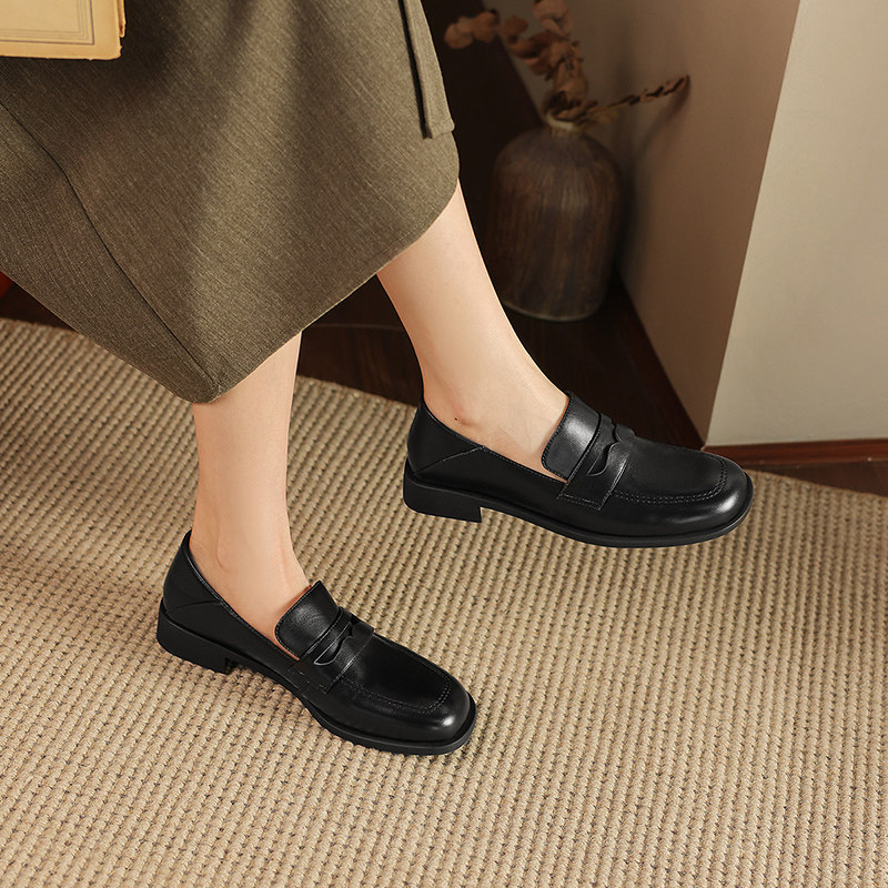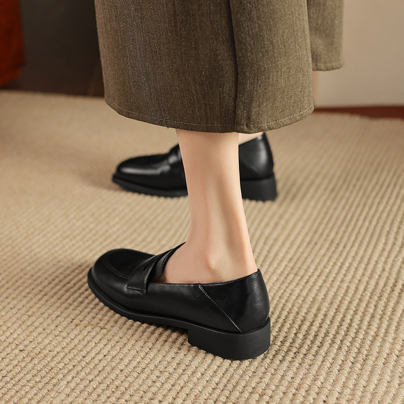 真皮乐福鞋女2025春秋新款英伦风小皮鞋一脚蹬厚底女鞋平底黑单鞋