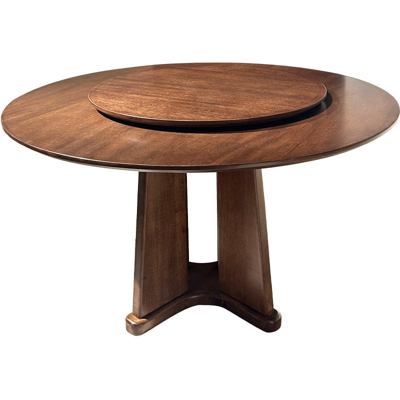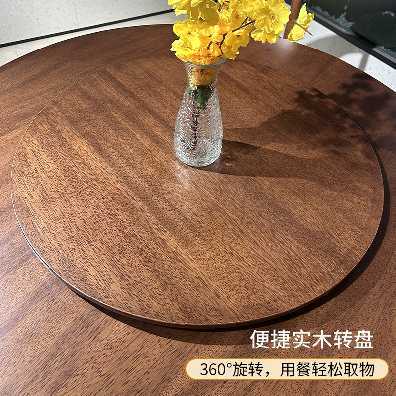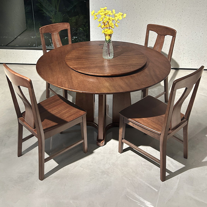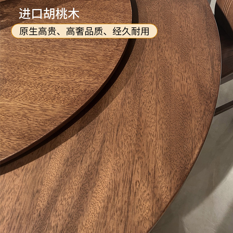 全实木餐桌家用小户型胡桃木现代简约圆形圆桌餐桌椅组合