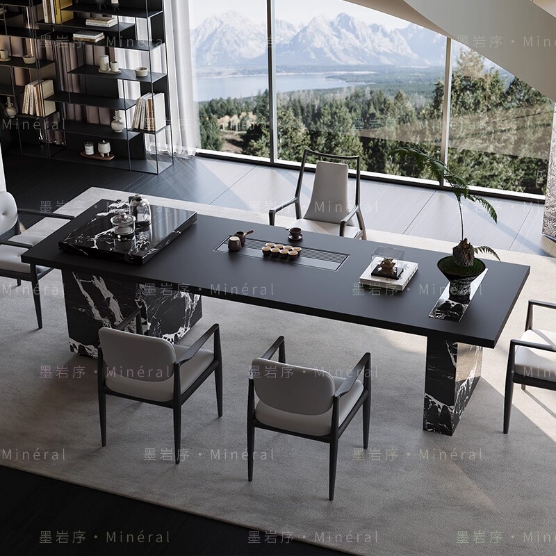 意式极简茶桌椅组合现代简约轻奢高级感办公室茶台茶桌椅套装