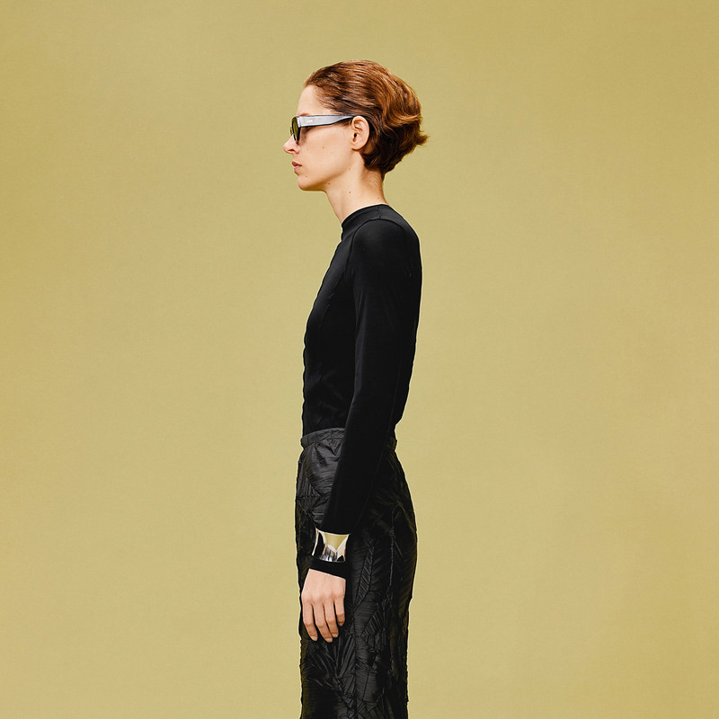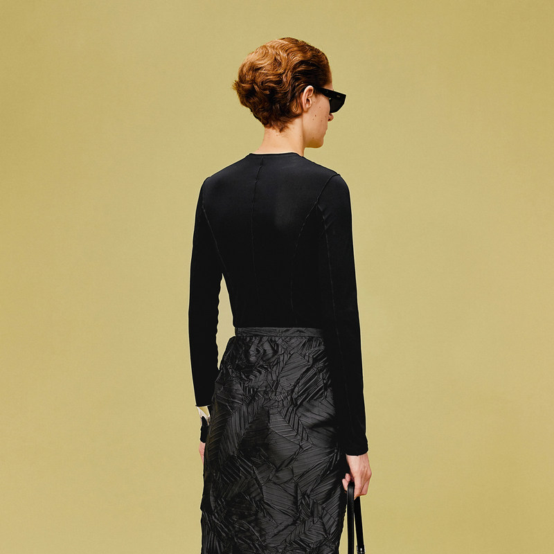 【0压系列】LESS春黑色修身显瘦纯色打底百搭长袖T恤衫2O3112920