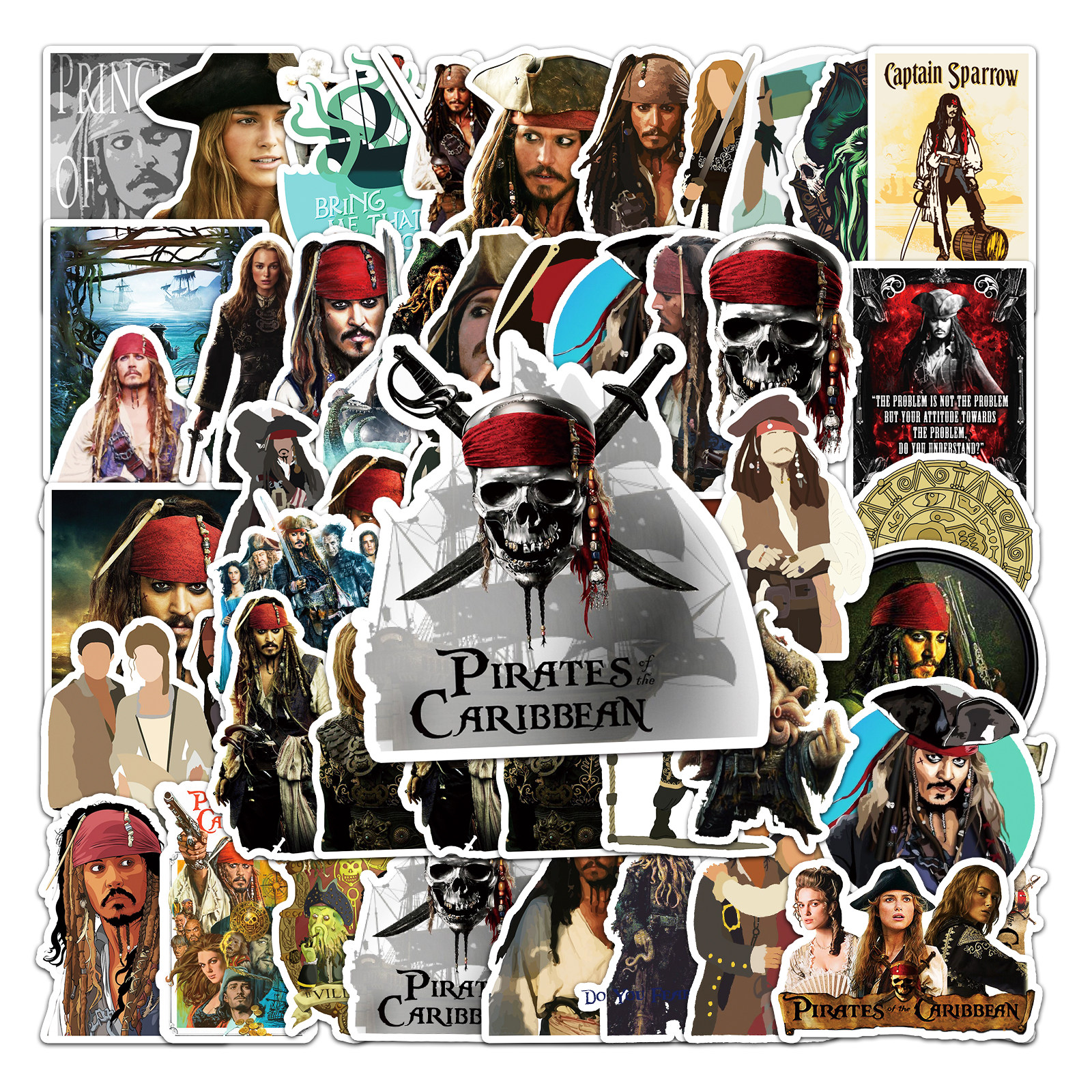 100张加勒比海盗杰克船长小图案行李箱滑板车电脑平板卡通防水贴