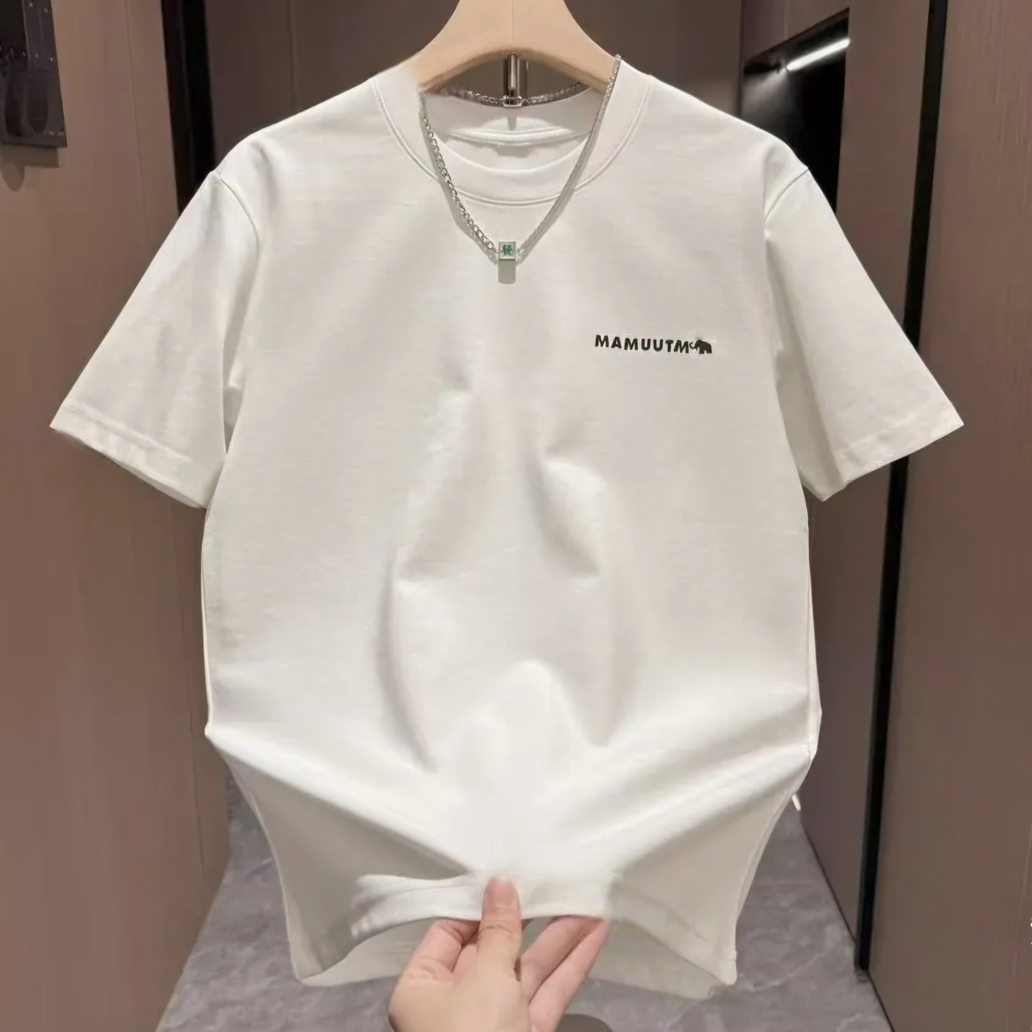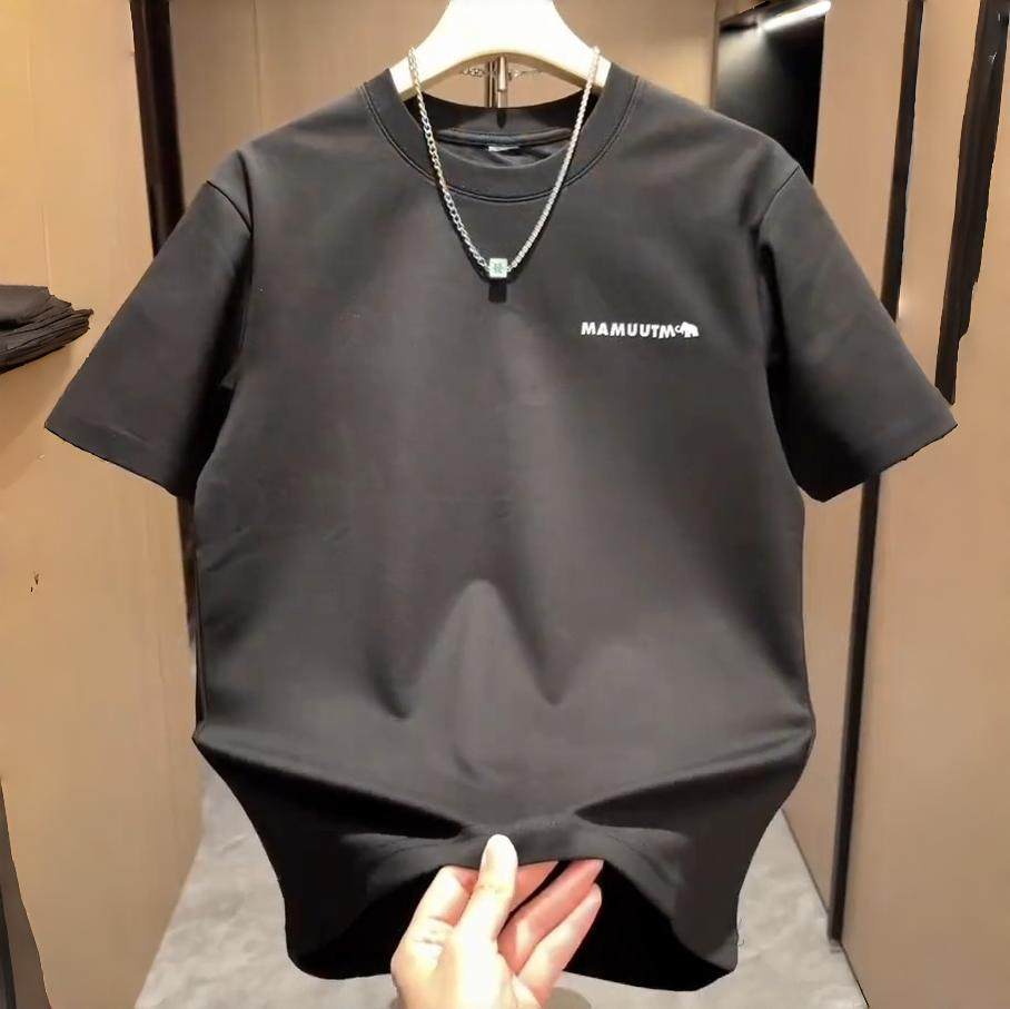 2055夏季潮牌硅胶刺绣圆领短袖男士时尚拼接宽松百搭休闲半袖T恤