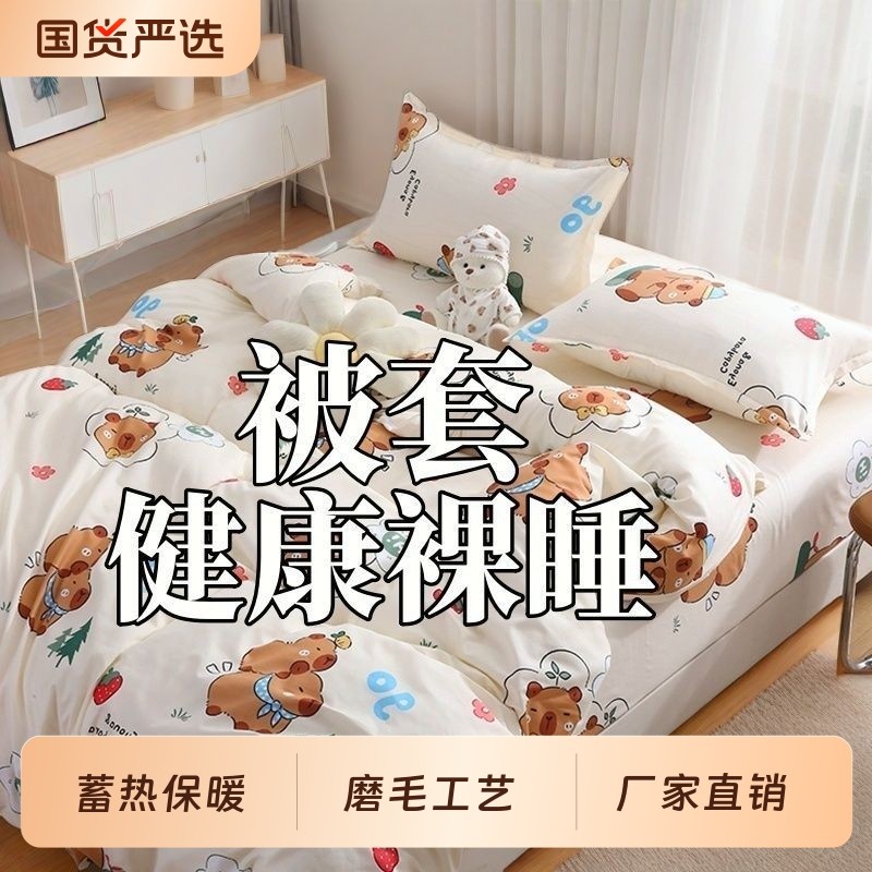 100%纯磨毛被套单件150×200单人被罩冬季200×230双人家用被罩
