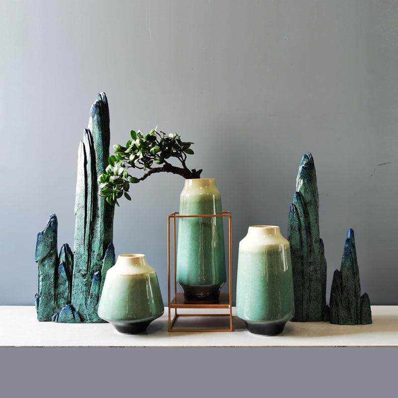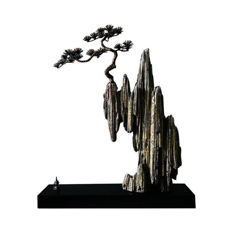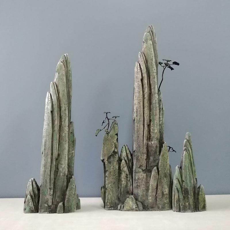 新中式创意金属假山造景摆件样板房售楼处玄关客厅软装工艺品摆设
