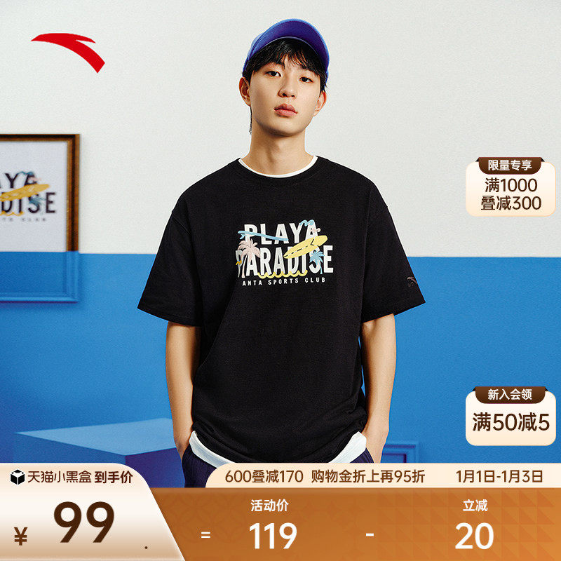 安踏休闲短袖t恤男士夏季新款印花潮流美式宽松运动上衣152528108