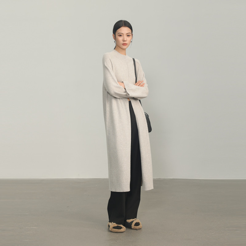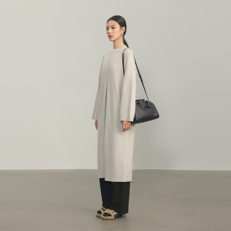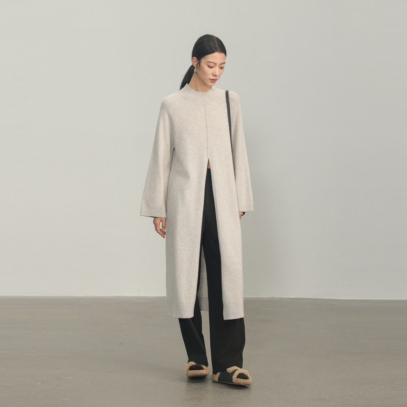 黑标BAIZHUO冬季新款插肩袖前开叉设计感长袖针织连衣裙AZ44LQ334