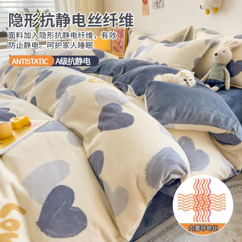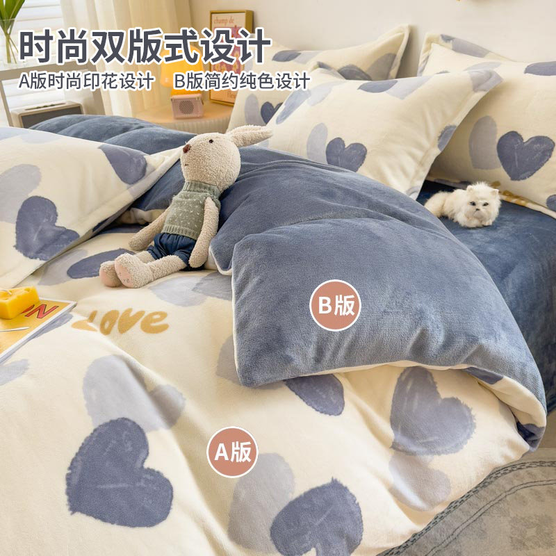 冬季加绒被套单件牛奶绒珊瑚绒宿舍单人单独毛绒被罩1.5米四件套3