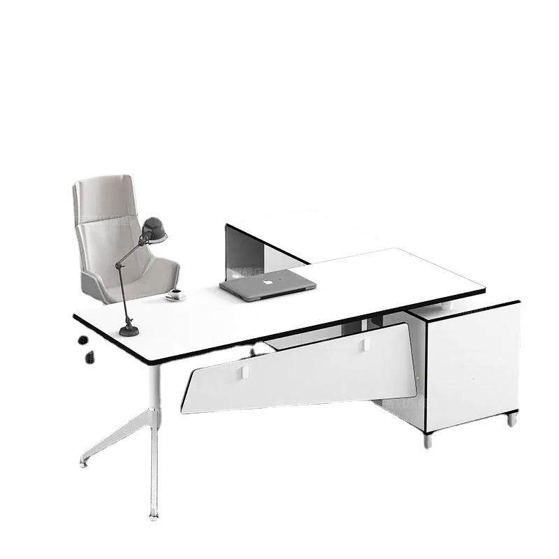 上海白色老板桌办公桌椅简约现代时尚大班台总裁桌家具桌椅组合