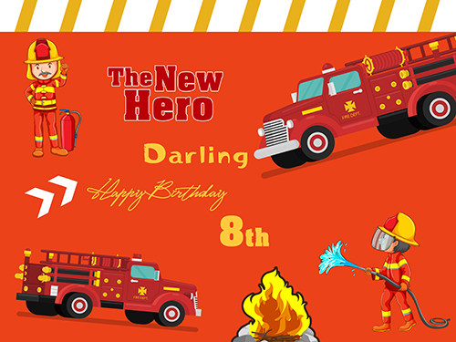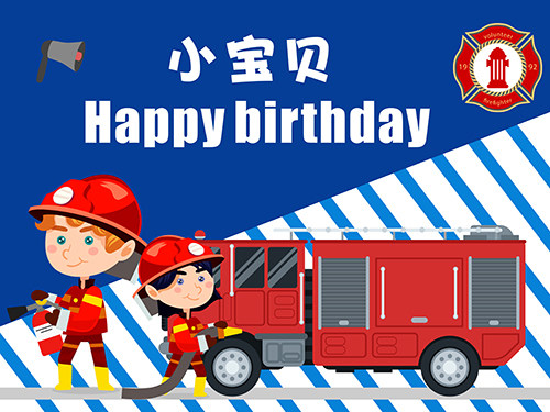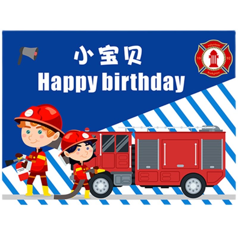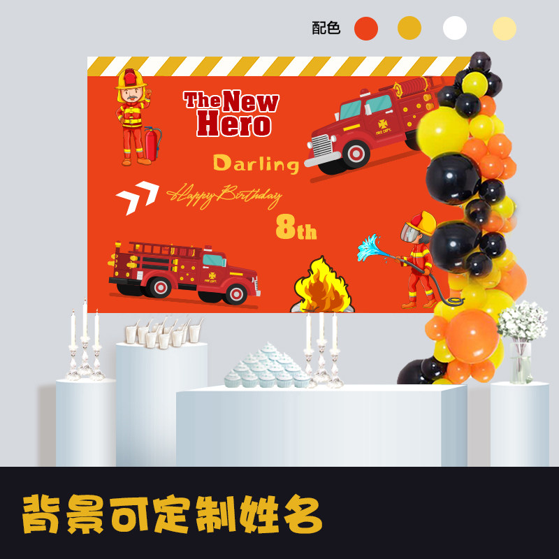 119消防日工程车儿童男孩生日派对酒店布置装饰气球背景墙布海报