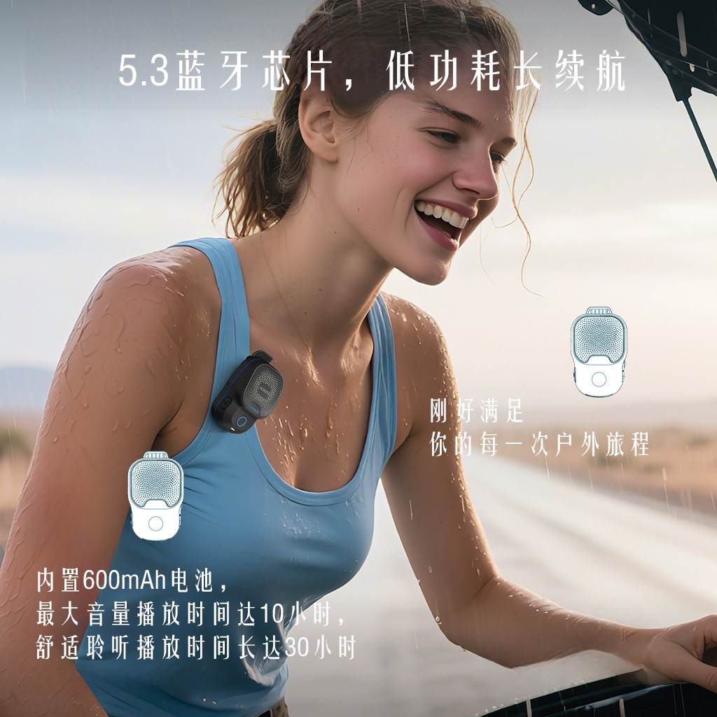 夹领穿戴小音箱户外徒步登山骑行便携式夹子音响IPX7级防水低音炮