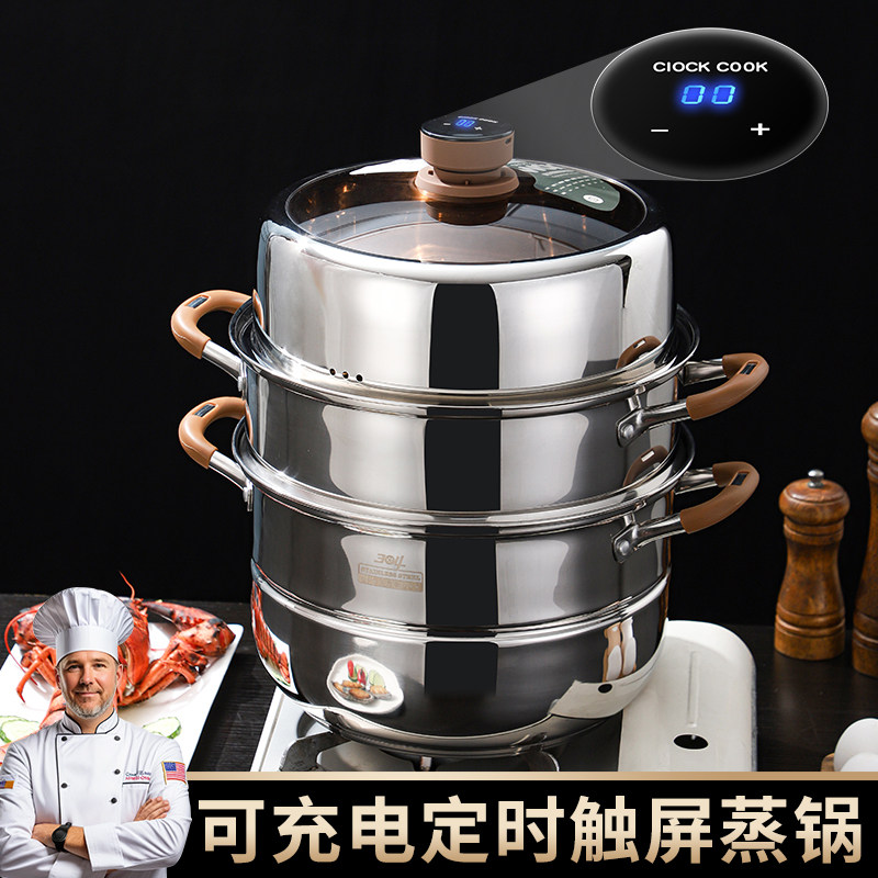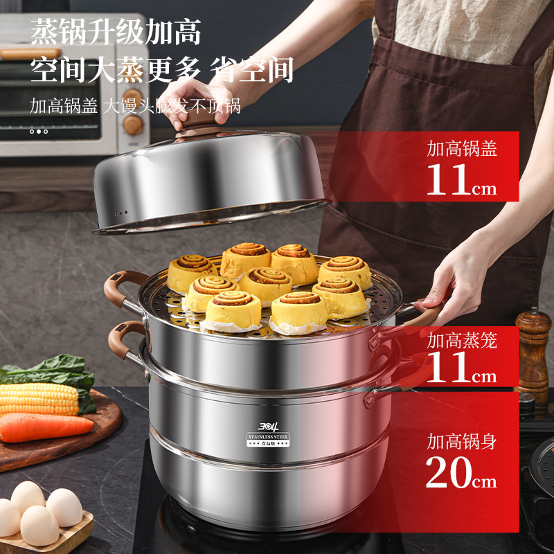 德国304不锈钢蒸锅家用多层蒸笼蒸馍三层燃气大容量食品级双层