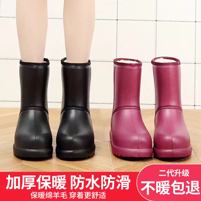 雨鞋女加绒防滑水鞋加厚保暖防水棉雨靴男冬季水靴一体绒厚底胶鞋