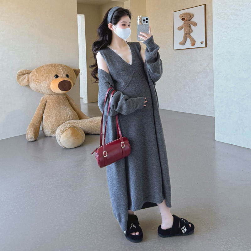 婧麒孕妇装冬装新款孕妇连衣裙洋气外套背心裙子穿搭孕期高级套装