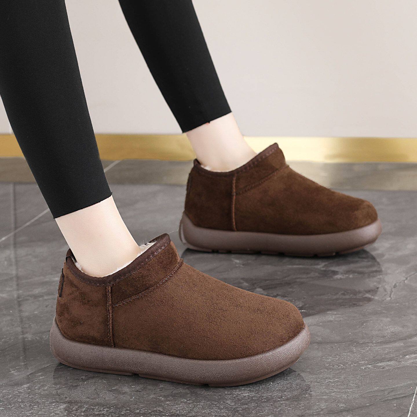 低帮厚底雪地靴女2025新款冬季懒人一脚蹬毛毛棉鞋加绒加厚女鞋子