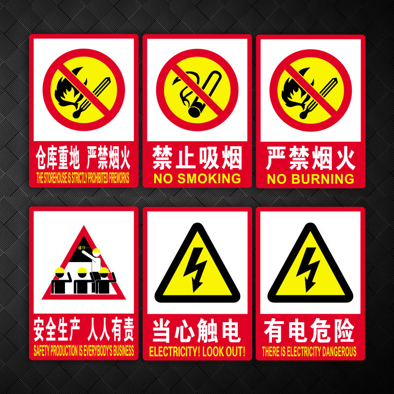 仓库安全标牌禁止吸烟提示牌贴纸严禁烟火当心触电警示警告标志标识贴厂区仓库消防有电危险生产设备车间牌子
