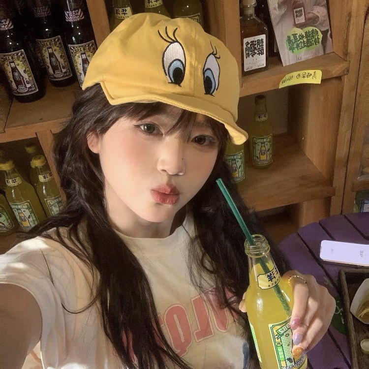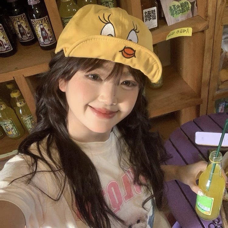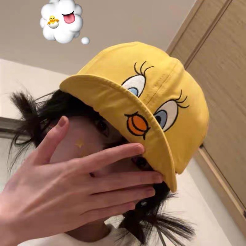 韩版ins崔弟翠儿翻檐鸭舌帽子可爱儿童卡通小黄鸭刺绣翠迪棒球帽
