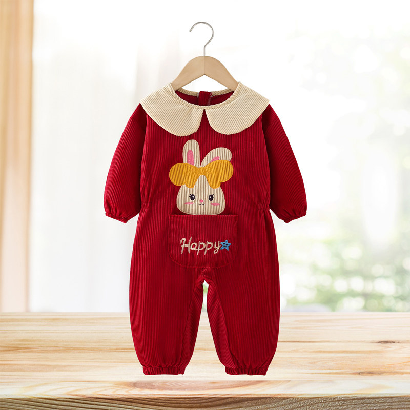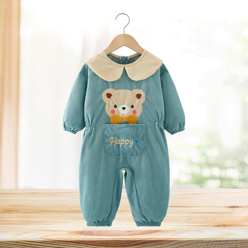婧麒宝宝爬行款罩衣秋冬季拖地爬爬服出门防脏防水衣婴幼儿学爬服