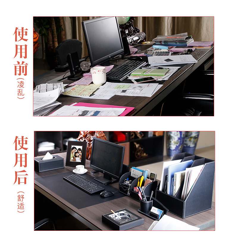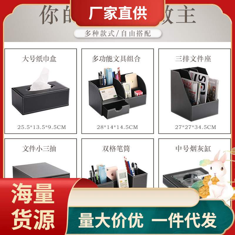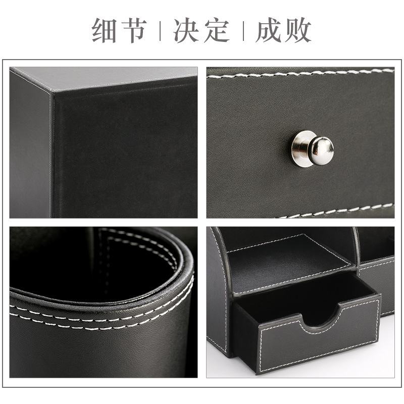 ?商务皮质多功能文具收纳盒资料桌面整理办公室用品柜文件柜
