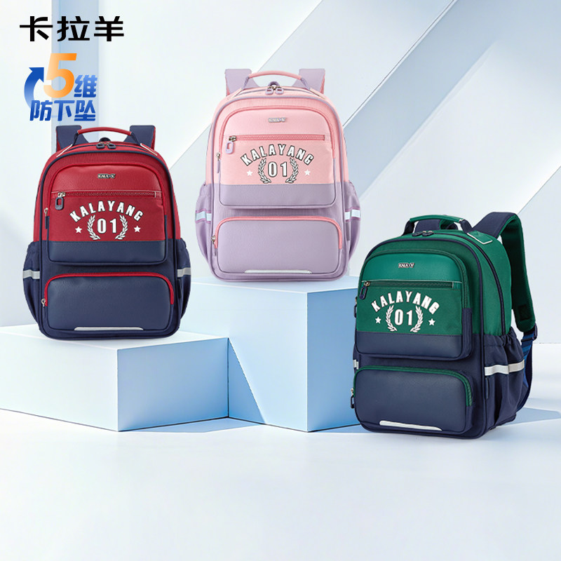 【新款】卡拉羊1-3-6年级小学生书包减负护脊风琴书包可折叠儿童双肩包超轻女生书包男孩书包官方旗舰店正品