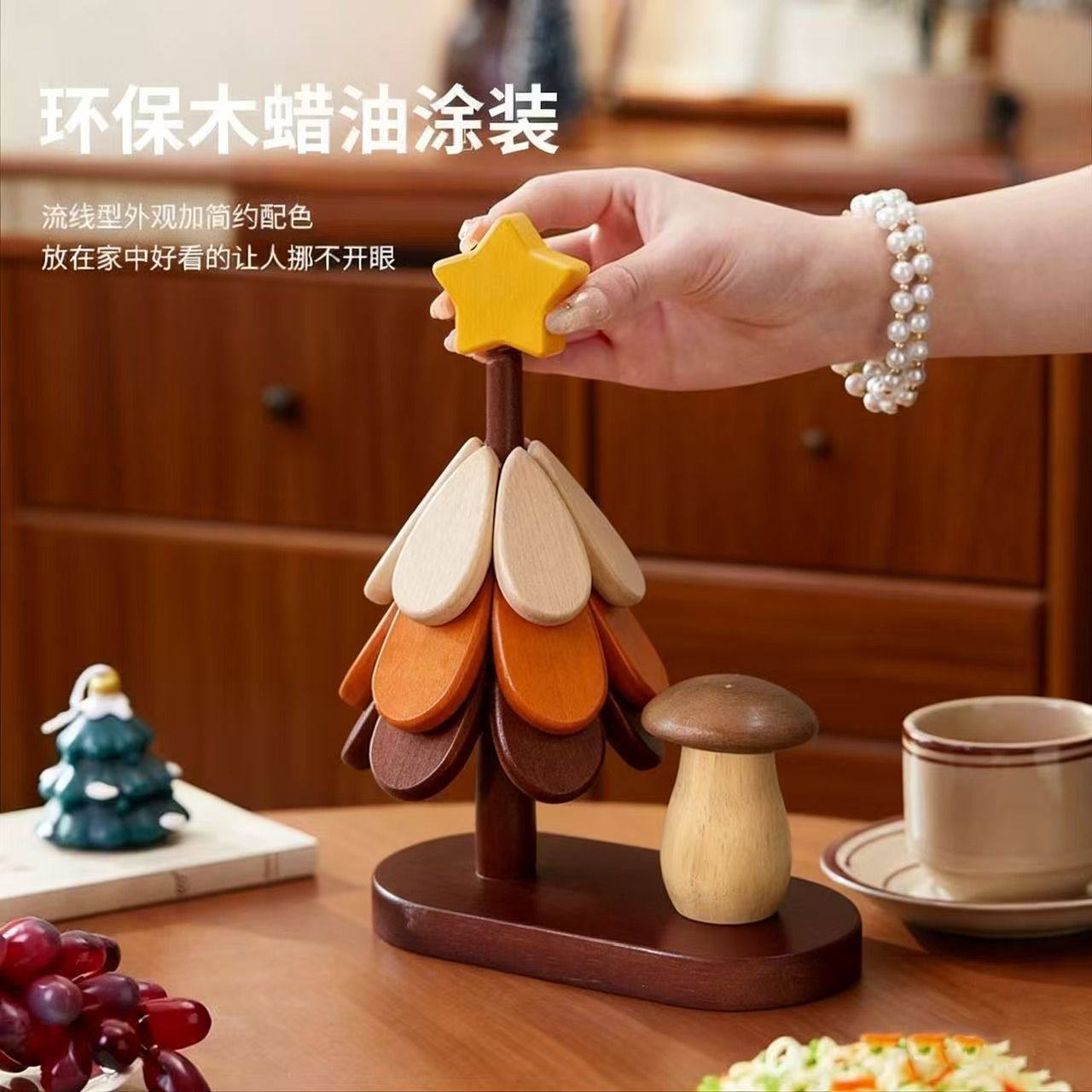 牙签筒圣诞树一棵树隔热垫防烫耐热垫实木家用创意餐桌菜垫餐垫摆