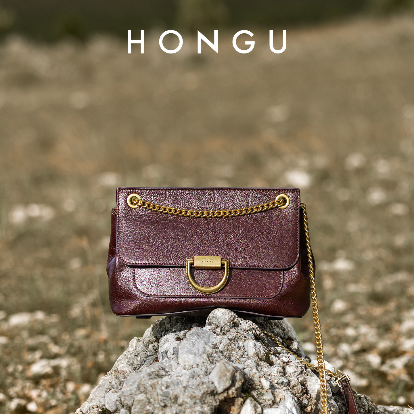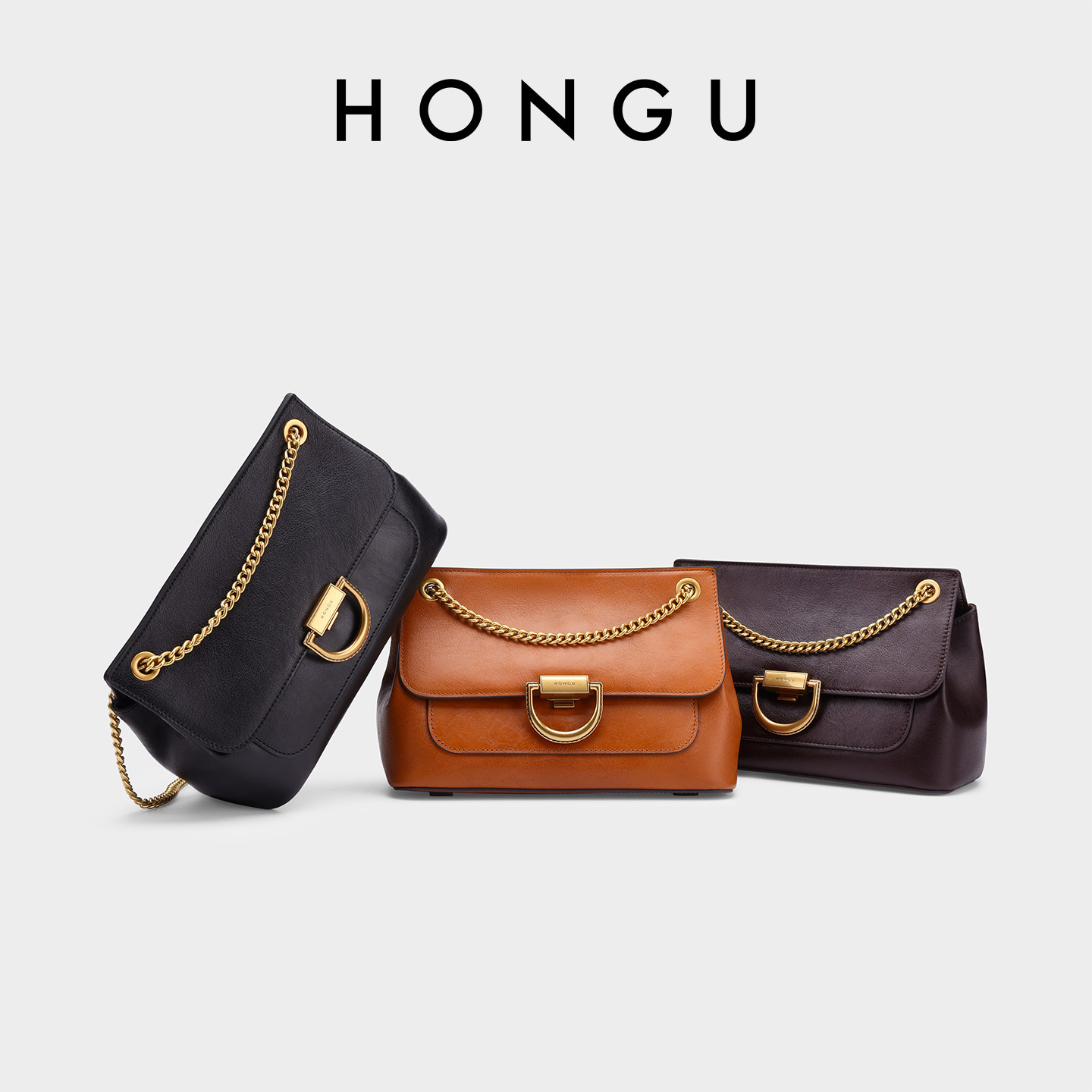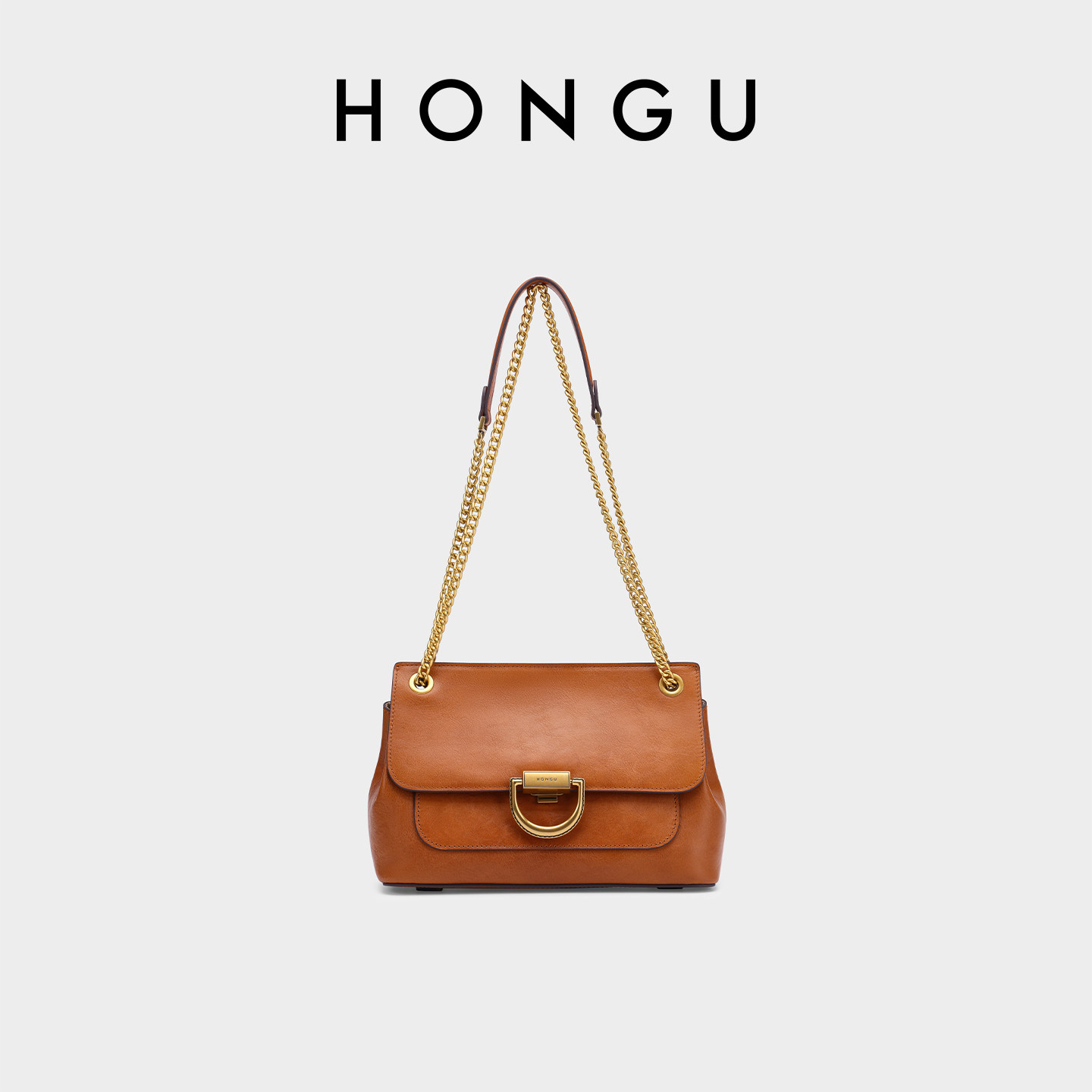 红谷包包2025新款真皮链条单肩腋下包复古高级感斜挎包牛皮女士包