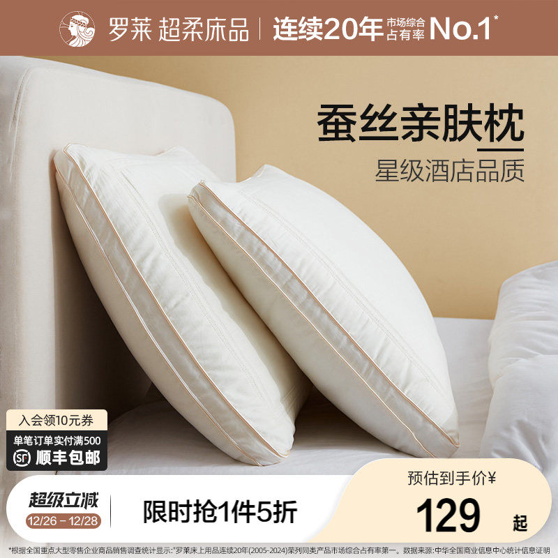 罗莱罗莱家纺床上用品高支全棉枕头枕芯学生宿用舍蚕丝亲肤枕单只