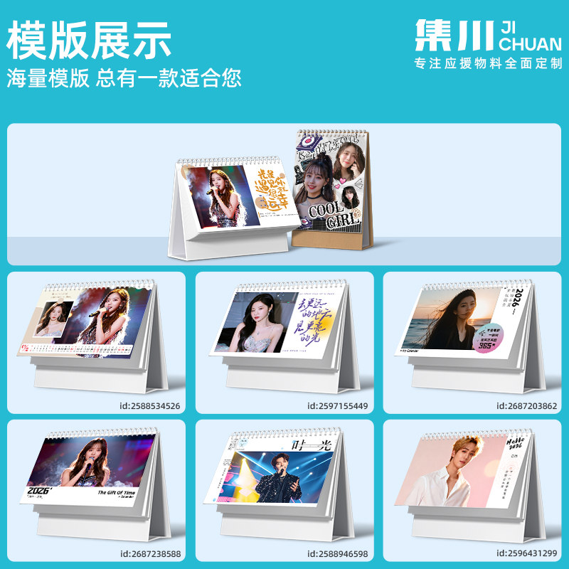 明星台历定制2026马年爱豆粉丝宝宝定做LOGO来图设计批量订制手机diy自制免费烫金翻页情侣照片日历台历定制