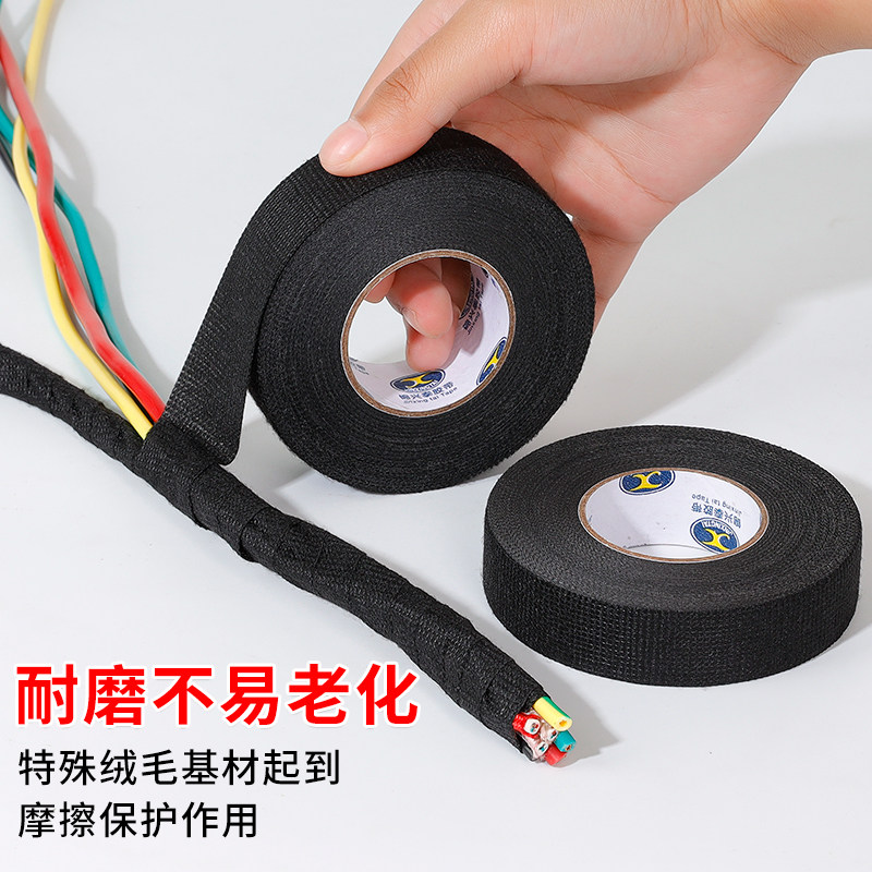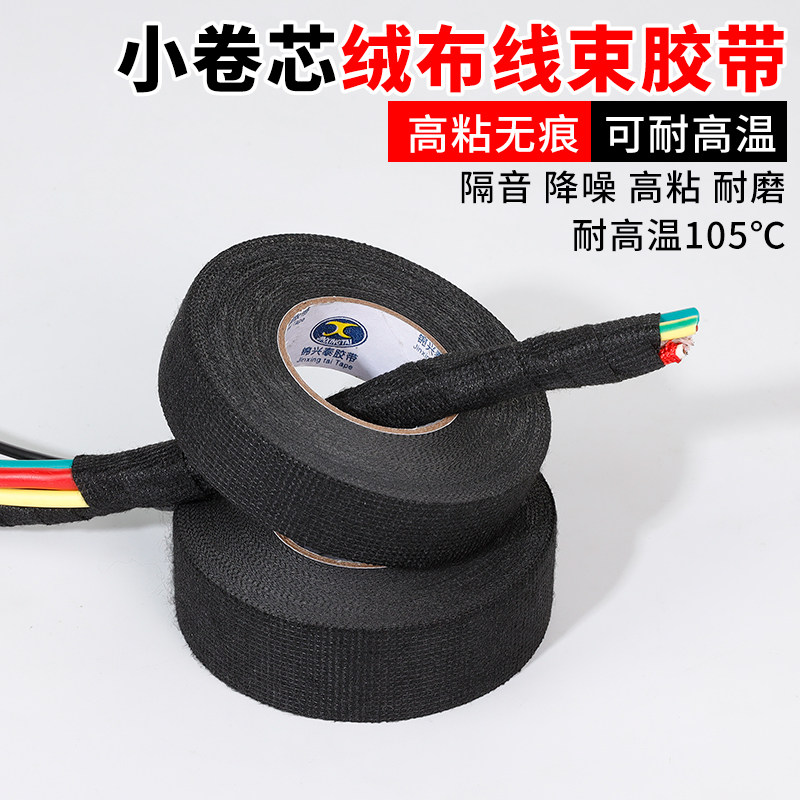 汽车线束绒布胶带耐高温电工胶布发动机舱隔音降噪绝缘黑色胶布电