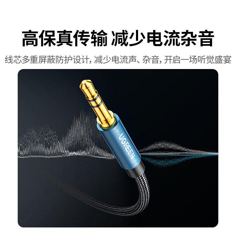 绿联aux音频连接线弯头3.5mm公对公车用车载汽车音响音箱电脑手机数据输出转换转接头35头戴式双头插耳机l型