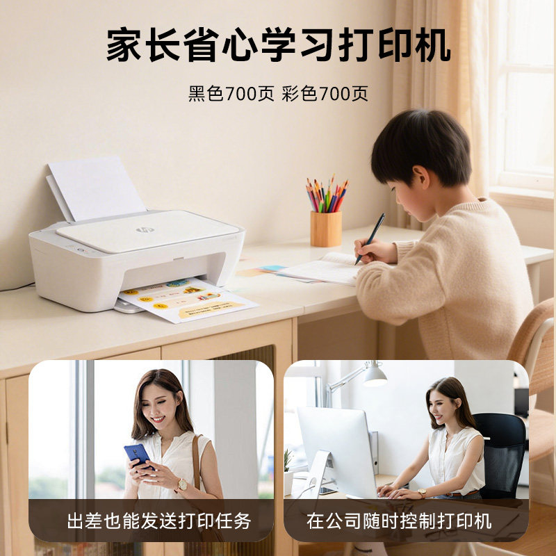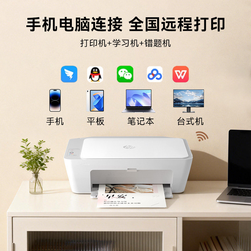 惠普2388彩色喷墨打印机家用小型学生专用无线远程可连手机复印扫描一体机A4纸家庭作业照片打印办公政府补贴