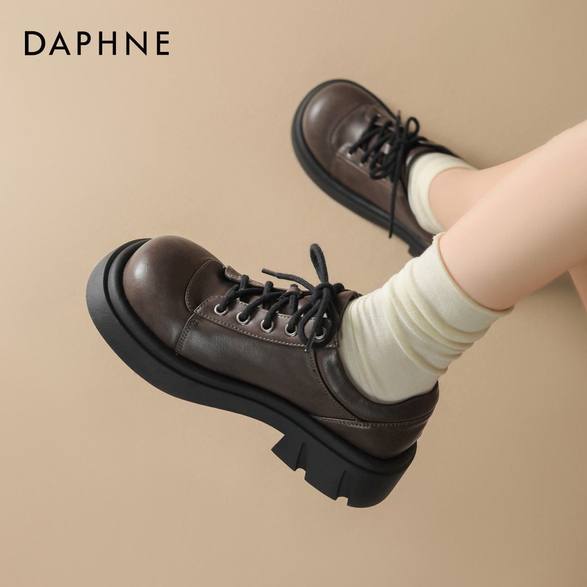 达芙妮厚底棕色乐福鞋女2026新款春季女鞋大头鞋单鞋英伦风小皮鞋