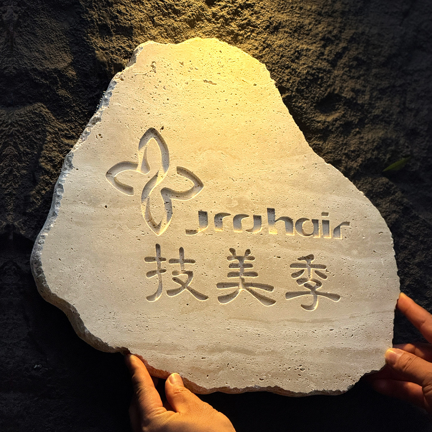高档洞石雕刻门牌定制美容院天然大理石装饰牌足浴店会所发光门牌