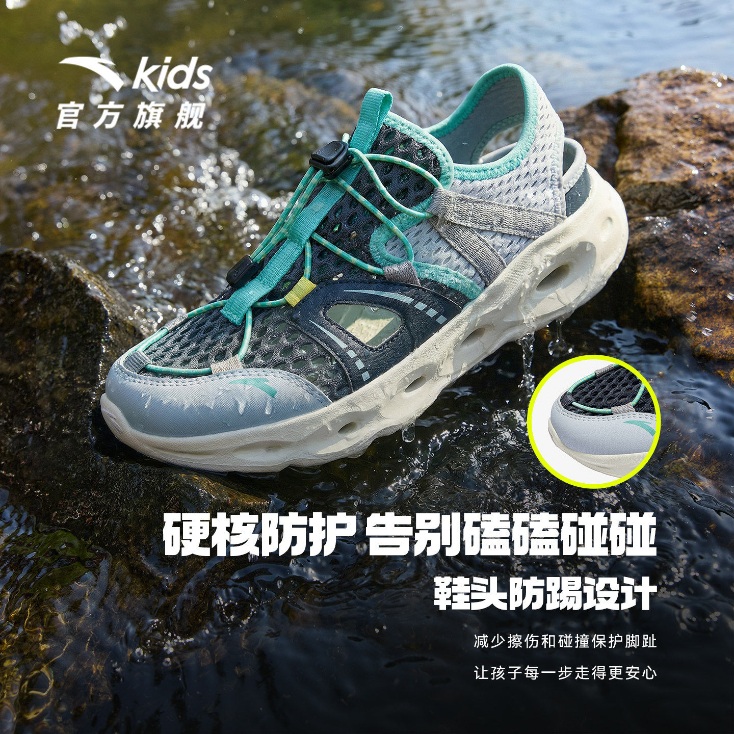 踩水王安踏儿童男女童沙滩鞋2026夏季新款防滑溯溪鞋大童包头凉鞋