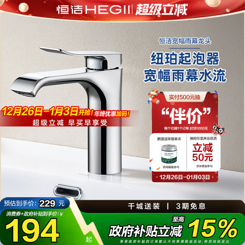 HEGII恒洁面盆水龙头洗手间卫生间冷热双控健康水龙头933-111