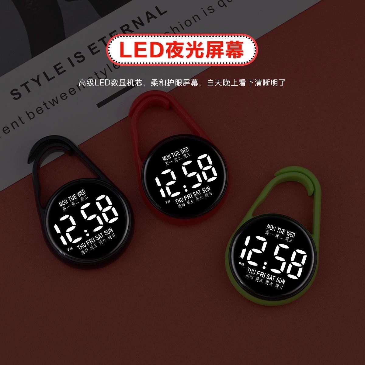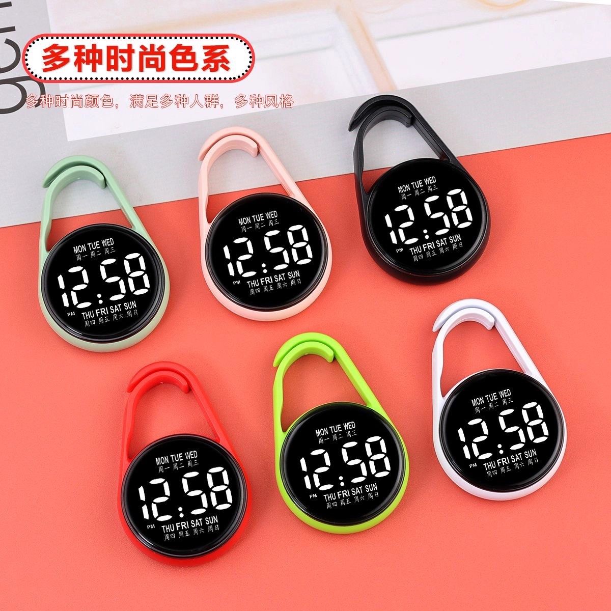 新款LED电子学生挂表防水夜光便捷式迷你钥匙扣挂件护士怀表随机