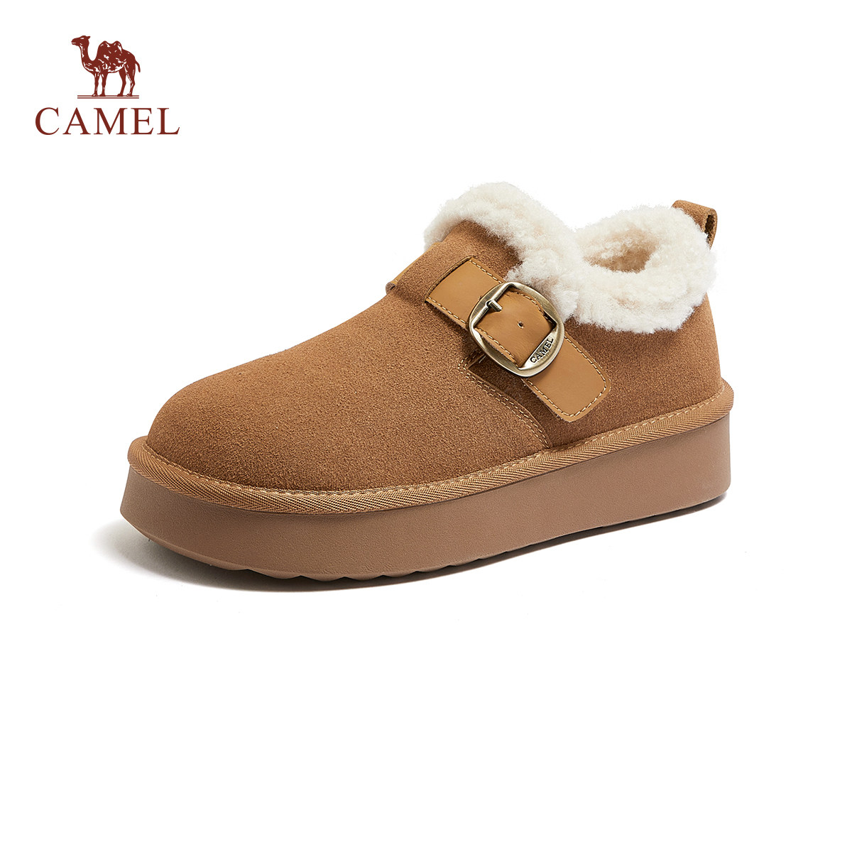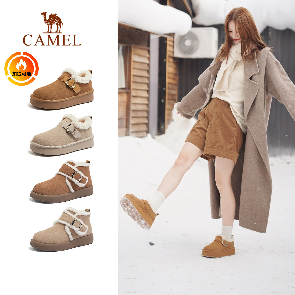 骆驼女鞋2025冬季新款加绒保暖棉鞋女款毛毛鞋厚底休闲勃肯雪地靴